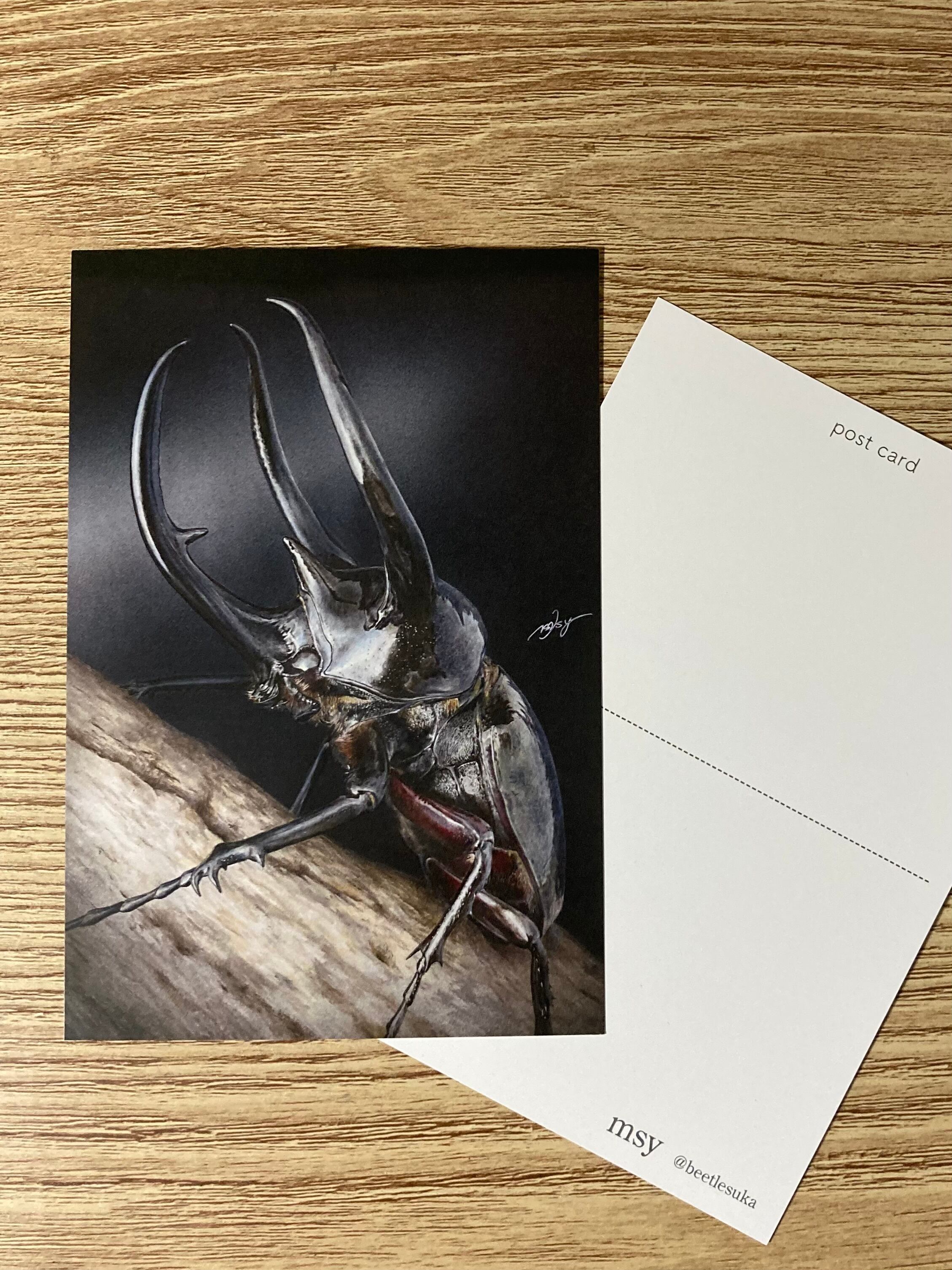 「コーカサスオオカブト」を描いた色鉛筆画のポストカード(プリント)です。