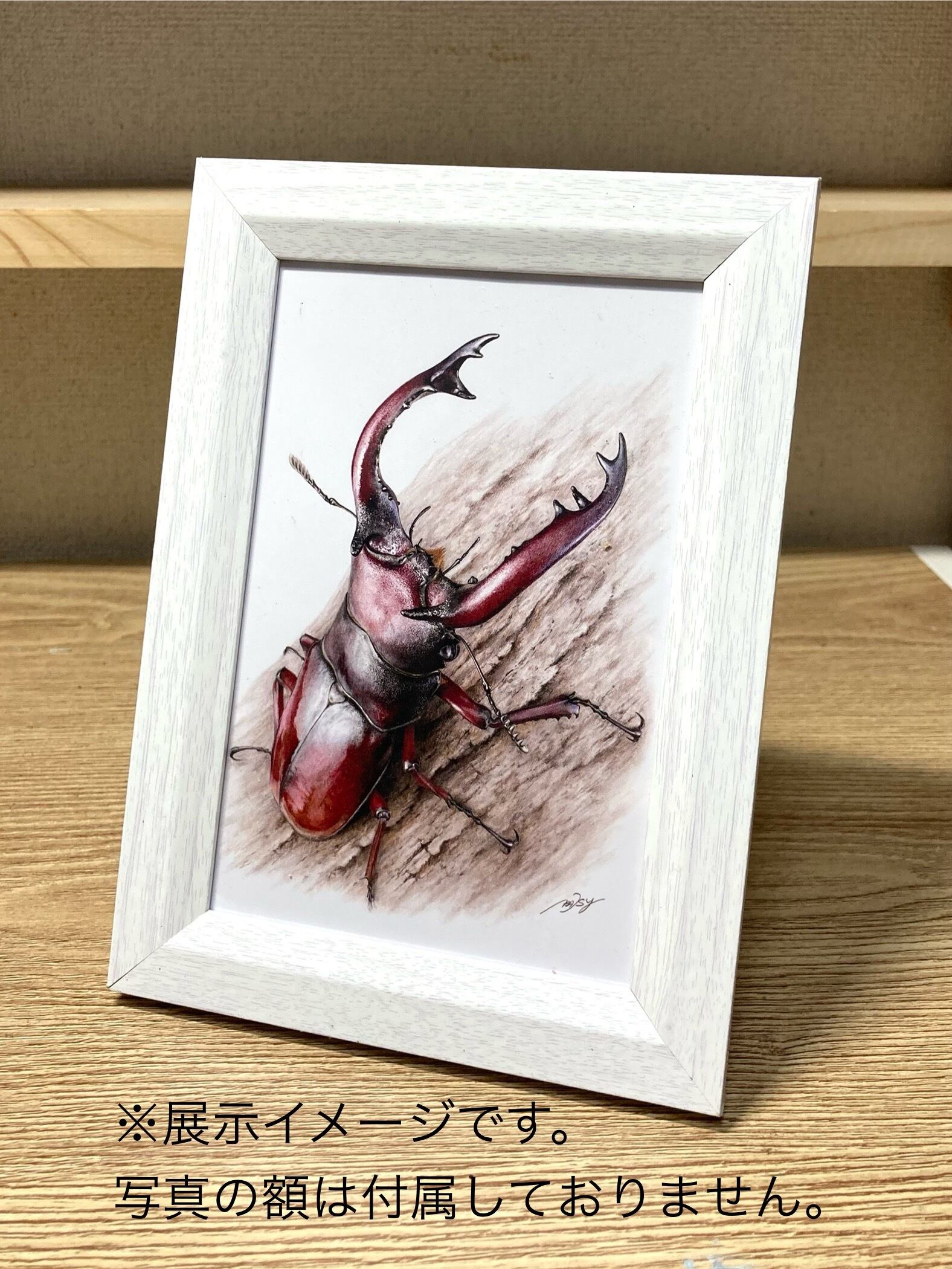 カブトムシ、クワガタを主に昆虫のイラストを色鉛筆で描いています。